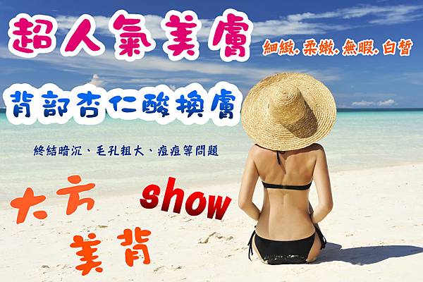 相信很多人會有這樣的困擾,雖然有一張飄亮的臉蛋,但背後卻隱藏著惱人的痘痘粉刺,或曬後膚色不均、暗沈等問題除了一個漂亮的臉外,背部也不能吝嗇的款待它唷!從背後看也要閃閃動人