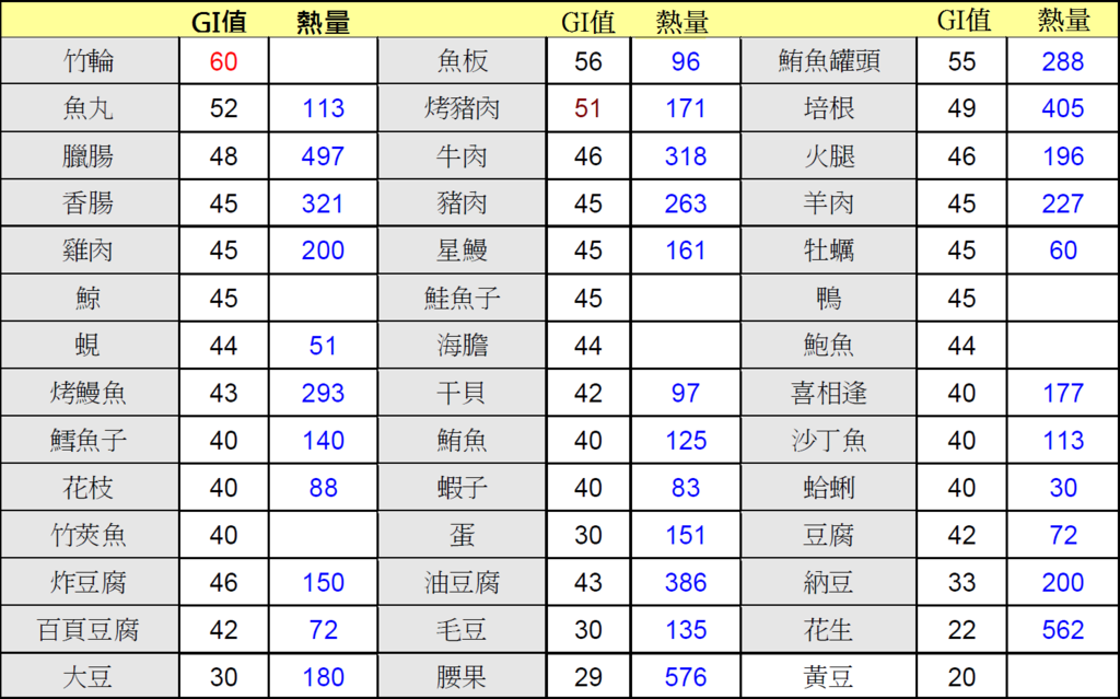 建議最好能攝取GI值不超過60以上的食物唷!