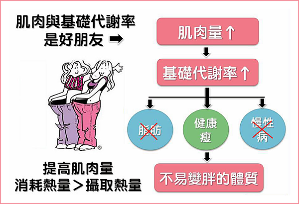 至於人體會變胖還是變瘦,則取決於飲食攝取的熱量與身體消耗的熱量是否平衡。基礎代謝量高的話,消耗的熱量容易超出攝取的熱量,於是也就比較不容易發胖;反之,基礎代謝量低的話,消耗的熱量容易少於攝取的熱量,也就比較容易發胖。
