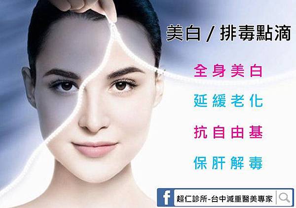 將具有抗氧化、嫩白效能之有效成分,以點滴形式注射進入人體,達到肌膚均勻美白的效