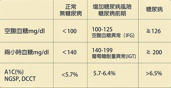 如果您發現自己有頻尿、過度口渴、 容易飢餓、體重降低、對週遭環境失去興趣或無法集中注意力、嘔吐或腹痛、手或腳的針刺感或麻刺感、視力模糊、反覆的 感染、傷口癒合緩慢等,要留意可能是糖 尿病的警告徵象,建議您應及早就醫檢查。